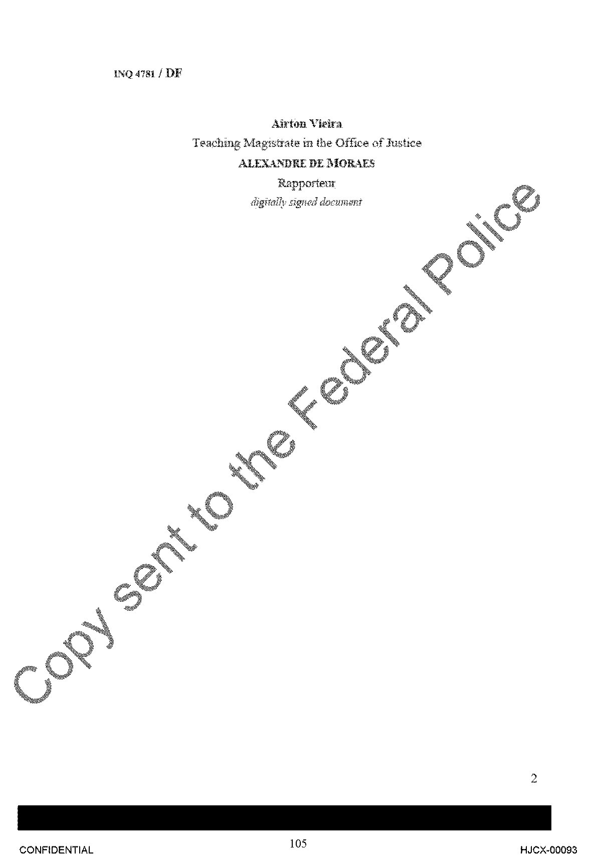 Como resposta, Airton Vieira informou que o pedido tinha partido de Moraes. “O problema é que foi o Ministro quem passou. Depois recebi pelo Deputado Frota…”. “Paciência. Vamos em frente”, disse o juiz instrutor.
