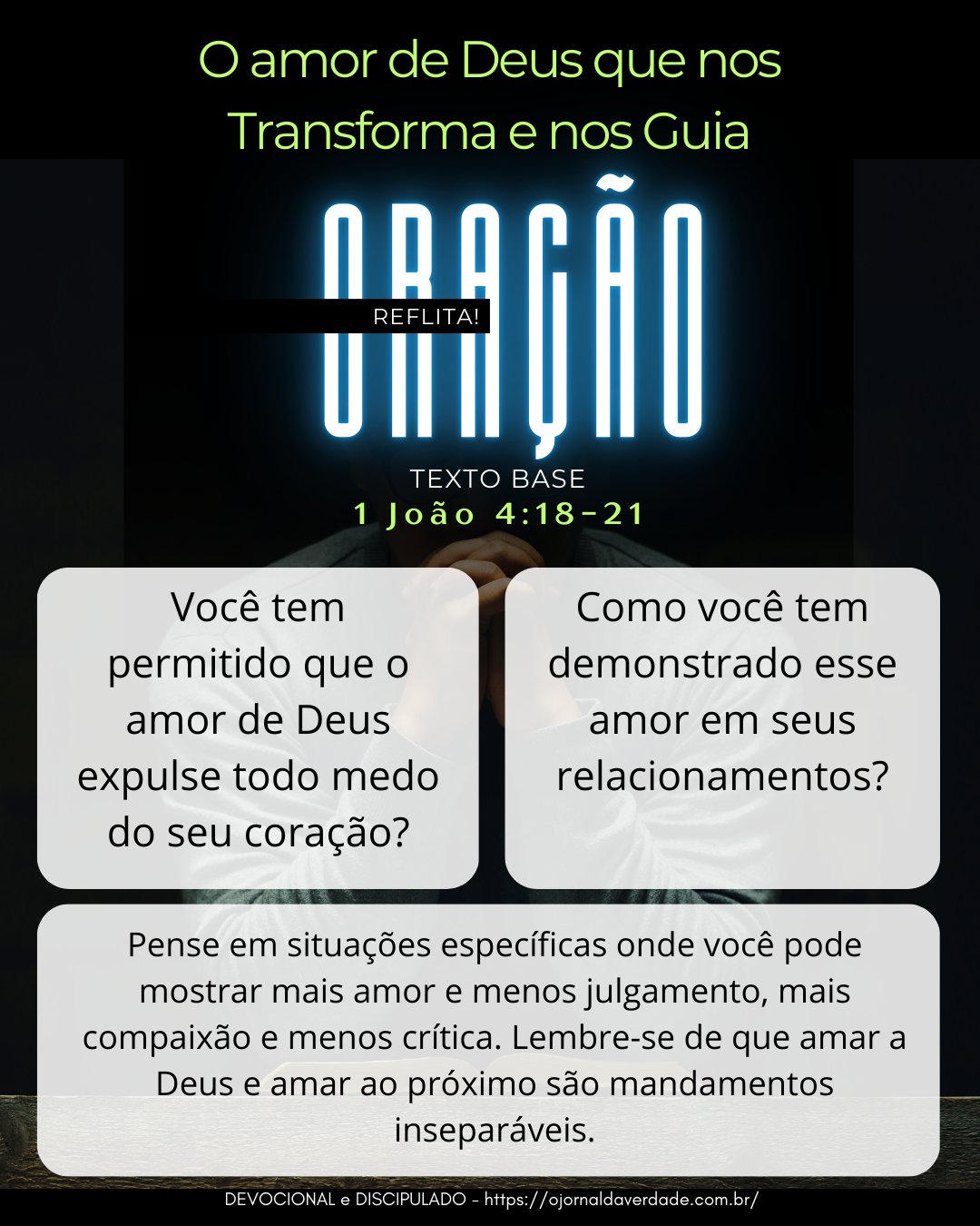 — Você tem permitido que o amor de Deus expulse todo medo do seu coração? — Reflita!